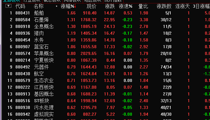 10:37 船舶板块小拉,主要混改预期的加上这个板块前几天没怎么跟风蓝筹涨有补涨需求,不过,这种盘面氛围不确定性太大,个人觉得没比要去追,看看就行了。