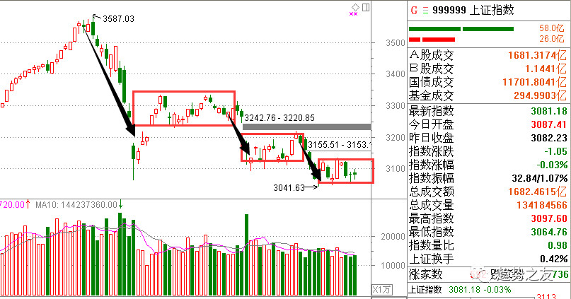 今天指数继续走出窄幅震荡的走势,尾盘被小翘了点回来这和上一个交易日走的很相似,上一个交易日也都是尾盘把指数翘回来指数看着没跌但是整个盘面氛围没脱回来,个股该跌的还是继续跌,下午尾盘也是指数翘上去,跌幅榜的跌停股海慢慢增加,最高的时候要增加到快五十只。今天盘面氛围表现一般,笔者在直播也反复说过最好多观察观察盘面情况不急的开新仓,下午多头有组织过一次反抽但是没量能而且也没势头出来个股几乎都不跟,最后整体盘面还是空头占优。