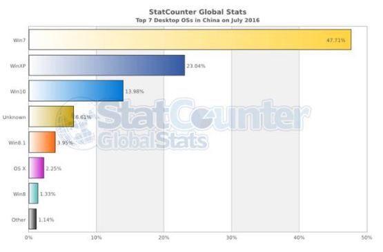 加速会注:微软发了一份怨念深重的声明——中国49.76%的电脑还在用Win 7/ Win 8.1,你们明明可以免费升Win 10的好么。在过去6个月内Windows 10的市场份额仅上升了8%,6月份Windows 7仍以49.05%占据榜首,甚至比5月还提升了0.58%。本文转自腾讯科技。