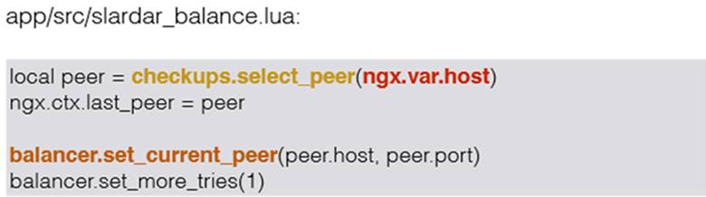 第一步就是用我们checkups选一个可以用的peer,根据什么选,就是根据当前请求的host选;第二步是从Consul或HTTP请求body加载代码。