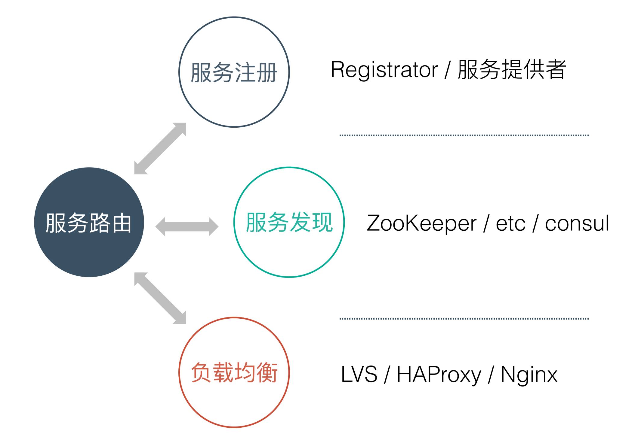 首先从路由开始说起,说到服务路由,要涉及到三个概念:服务注册、服务发现和负载均衡,如下图: