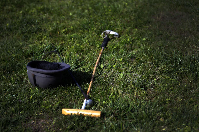 为啥打马球的马要剃掉鬃毛呢?因为打马球的时候,马球手要右手挥动着球杆,如下图: