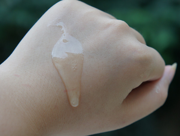 挤出一些在手背上,凝胶的质地非常清透,透明色,流动性较强~味道也比较好,只是我描绘不出来是什么类型~