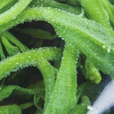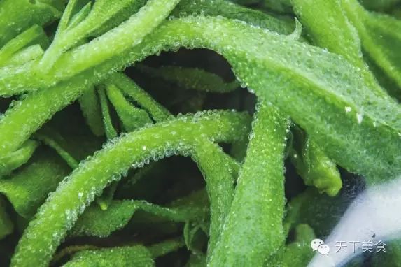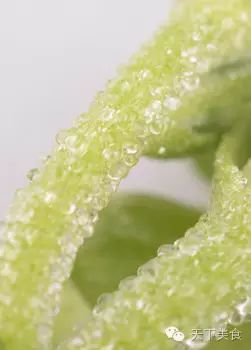 非洲冰草是盐碱植物,可在海岸处生长,全身上下挂满晶莹剔透的“冰珠”细胞,泡状细胞的液体中含有盐分,因此吃起来本身就带有一些咸味。