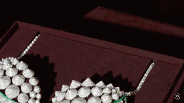 2013年超模Candice Swanepoel佩戴的皇家梦幻钻石内衣,由世界知名珠宝商Mouawad设计制作,一共耗费4200颗珠宝,中间镶嵌有52克拉梨形红宝石吊坠。价值高达一千万美元。