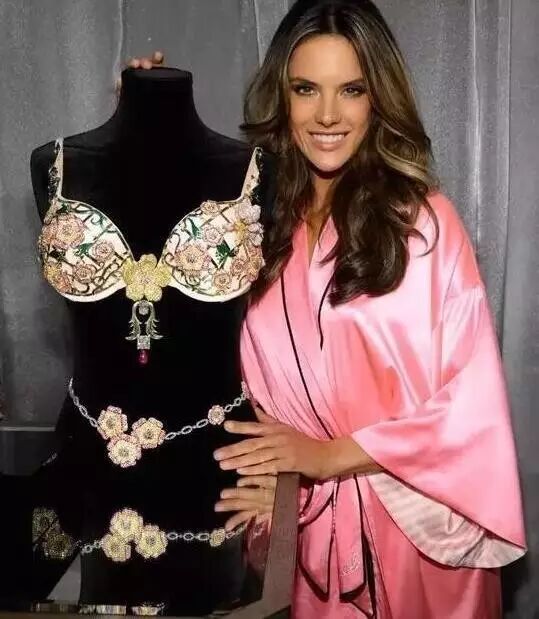 繁花梦幻钻石内衣以花卉为设计灵感,5200多颗钻石、水晶镶嵌在18K玫瑰金和黄金上,再加上一颗12.5克拉和一颗20克拉的大钻石点缀其中,由Alessandra Ambrosio演绎。