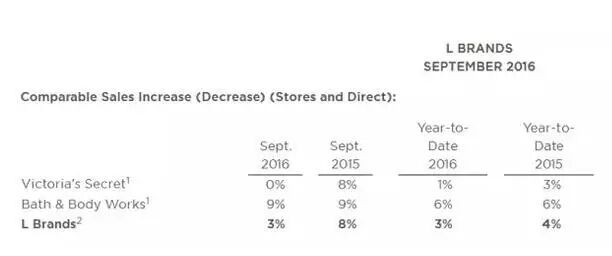 今年以来,维密的表现确实令市场失望。L公司数据显示,2016年9月,公司销售同比上涨3%,但这主要是来自旗下日化产品的贡献(增长9%),而旗下维秘产品的销售疲软,增长为0%,而去年9月,维秘的增长率为8%。