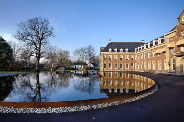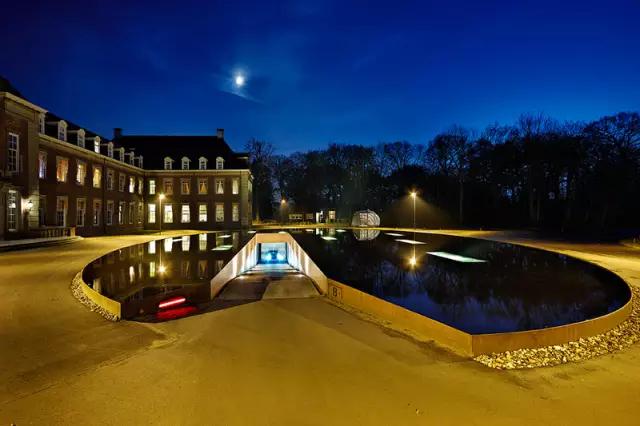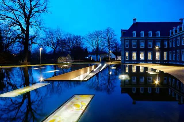 Hageveld庄园池内的采光井可以将自然光线引入地下车库。天窗使用彩色玻璃板,每一扇都是一件独立的艺术品。到了晚上,从地下车库透上来的光为庭院营造出别致的空间氛围。