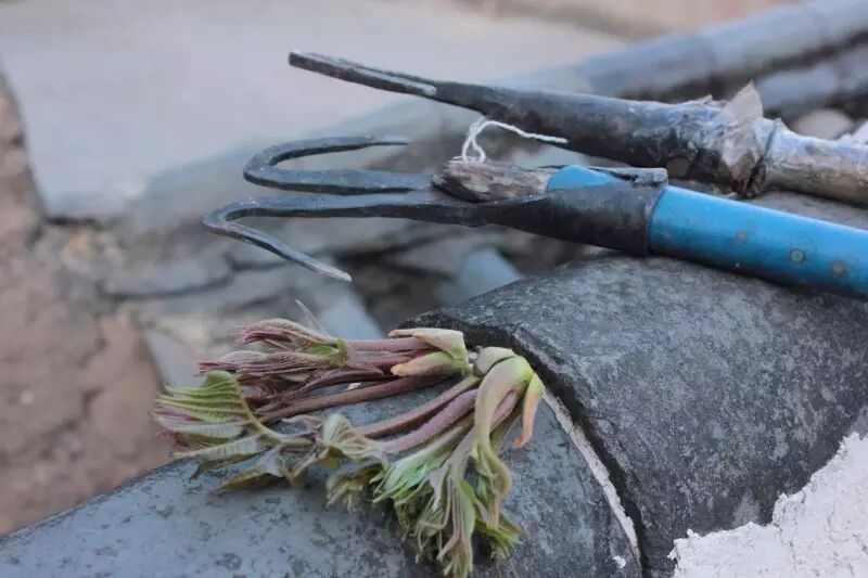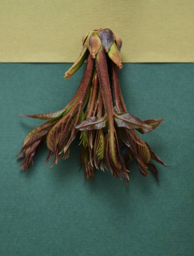 而香椿芽的发芽只需要2-3天,到了叶芽长出便要马上采摘,若是慢了一天,口感便会老,味道也差天共地,就像松茸一样,采摘香椿芽的过程也是分秒必争。