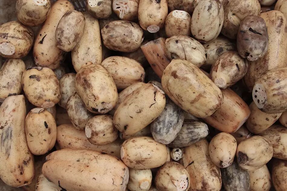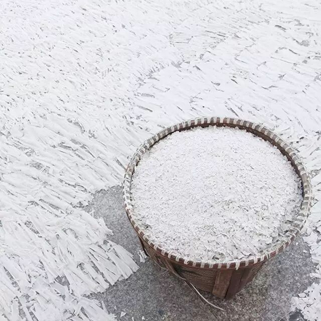 金华丘陵间生长的山塘莲藕,由山泉水滋养,是公认最清甜的,用来制作“鹅毛雪片”最好不过。鲜藕上岸之后,从磨碎到晒干都要在两天内完成,其中足有8道工序,更不能出现一点失误。