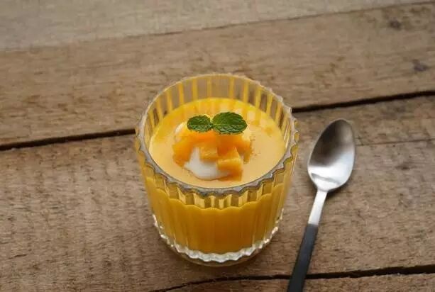 ❸ 酸奶的量和口味按个人喜好随意,你可以多加点牛奶这样布丁会比较爽口少加点牛奶布丁会比较粘稠,我的做法是先放部分搅拌后尝试口味再分次加入到满意状态,另外我用的是芒果口味的酸奶。