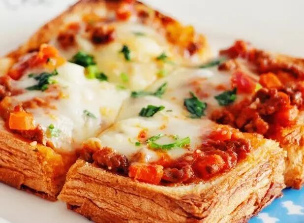 只有一片吐司了?不如加上浓郁的肉酱,和拉丝的奶酪,这搭配可真是赞!