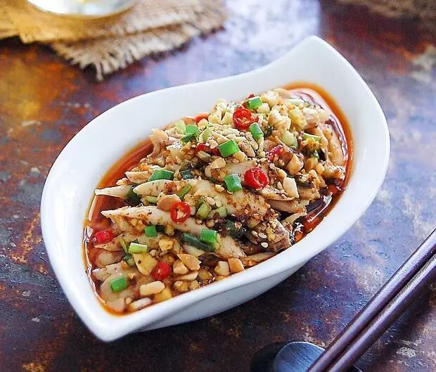极具四川风味的一道凉菜。麻辣红油浸没鲜嫩鸡块,搭配丰富的佐料,集麻、辣、鲜、香、嫩、爽于一身,叫人口水直流。