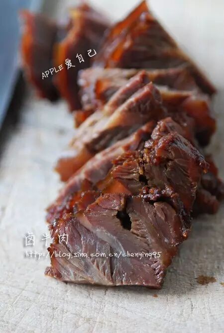 选用上好的牛肉,放入卤汁中进行长时间卤制,得到筋道耐嚼的卤牛肉。切成薄片,最好再沾上一点辣椒面,解馋又不腻。