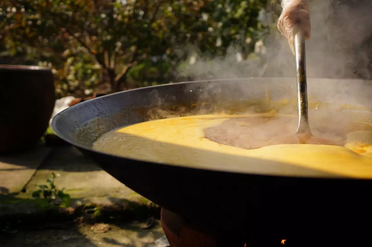 最后的熬酱,更是一件急不得的事,烧果木用慢火,随时观测温度和糖度,糖和盐充分渗透融解。熬好的酱要尽快装瓶,避免与空气中的细菌接触,让保质期更长。