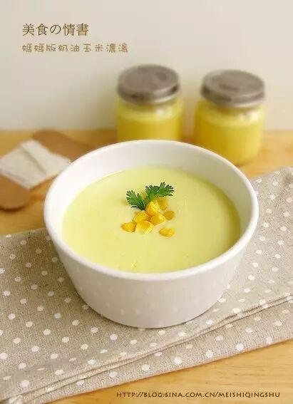 ❹ 做好的玉米糊很方便给宝宝做辅食用.也可以加工一下做成别的美味.比如好喝的玉米浓汤,玉米羹......