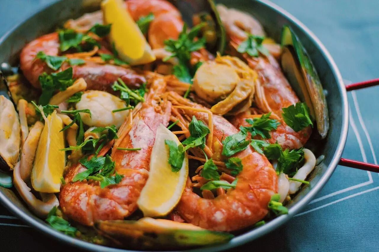 要是能做一份西班牙海鲜饭就更好了,金黄色的米饭,浸润虾和青口的鲜味,加之藏红花独特的香气,一口下去,就尝到了地中海带着咸味的海风和永恒金色的阳光。