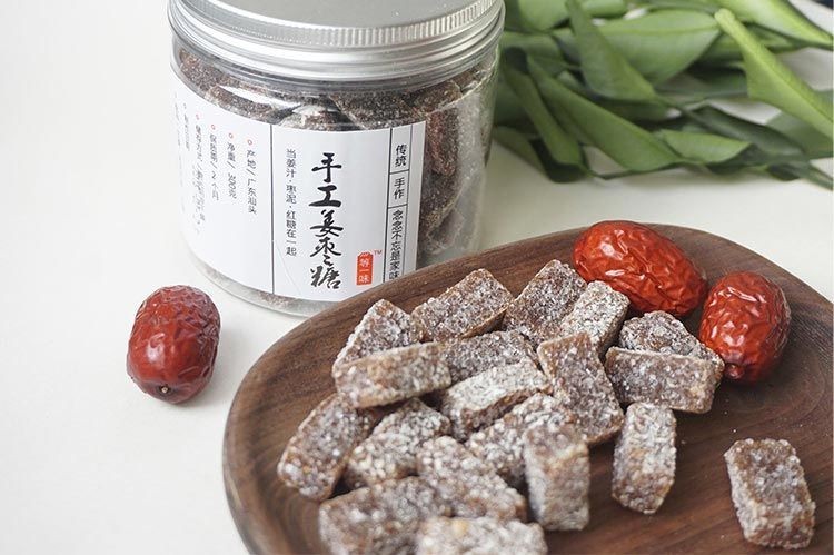 最近,她和厨友聊天时又有了关于姜糖的新灵感。她想到姑娘们都喜欢喝的糖姜枣膏,自己以前也喝过,觉得口感蛮和谐,暖暖的姜汁和甜甜的红糖搭在一起,一想就很温暖,如果做成一颗小糖,还省事方便,于是便有了现下好评如潮的姜枣糖。