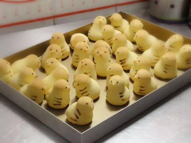 亨亨快四岁的时候,啊呜和他一起为班上的小朋友每人做了一个超萌的小鸡造型的烧果子。