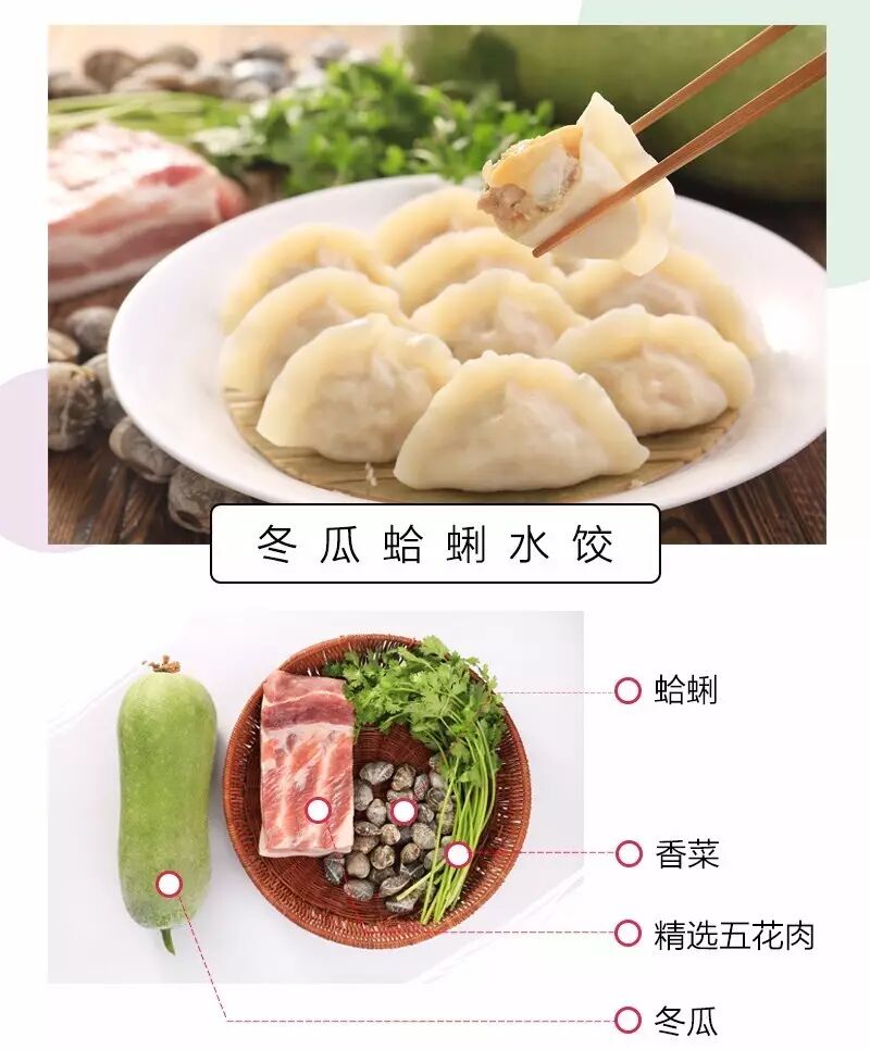 应季的野生蛤蜊,每一只都更加肥美饱满,包入饺子内更能锁住细嫩的肉质与多汁的口感。清新软糯的冬瓜吸满了蛤蜊鲜甜的汁水,每一口都鲜美多汁,留有回甘。