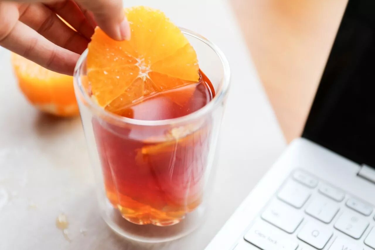杯中放入一个茶包,倒入 500ml 沸水,等待半分钟。取出茶包,放点糖或蜂蜜,再放上切片橙子、红柚、百香果等喜欢的水果。口味酸甜清爽的果茶就做好了~