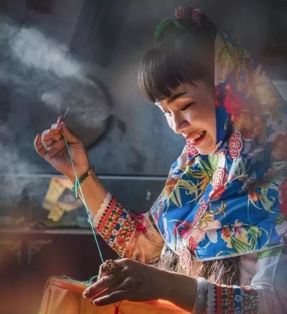 大岞村的惠安女,保留着清朝服饰上衣下裤的基本形制。上装大襟右衽,弧形下摆,绣花袖口。下装大折裤,穿着时将腰部折叠缅向一边,以细绳绑扎,再系以银腰链或腰带。她们通过叠穿的方式,来增加服装的层次感。她们配戴碎花头巾,来踩准女性温婉穴位,来穿出绿色田园感。在色彩的选择上,她们喜好浓重标识,对比强而不俗,突出鲜明的中国元素。