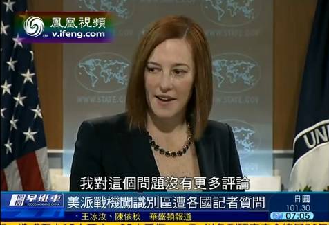 当时,中国划设东海防空识别区不针对任何特定国家和目标,美国政府却对此提出严重关切,美军派出两架战机飞越东海钓鱼岛上空。时任美国国务院发言人的普萨基当天在记者会上被各国记者质问,王冰汝更是直接呛声,提出了当天记者会的关键问题”全世界20个国家都有防空识别区,为什么中国不能有?“(戳链接回看:http://news.ifeng.com/mainland/special/fangkongshibiequ/content-5/detail_2013_11/27/31593267_0.shtml)。虽然普萨基试图为美国的言行做辩护,却难以自圆其说。