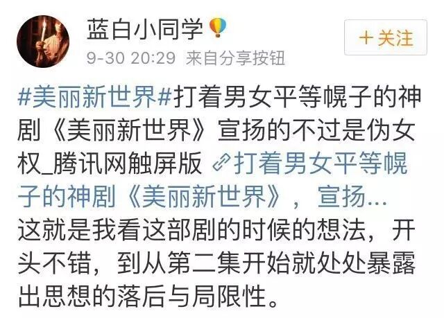 当然也有人认为这部神剧“打着男女平等的幌子宣扬伪女权”。