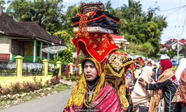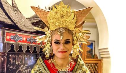 Minangkabau名字是由Minang和Kabau组合而成,Minang是胜利的意思,kabau则是水牛的意思。在这个部落里,水牛角是胜利与荣誉的象征,而Minangkabau女子的头饰便是水牛角形状,以此彰显女性的权利与地位。