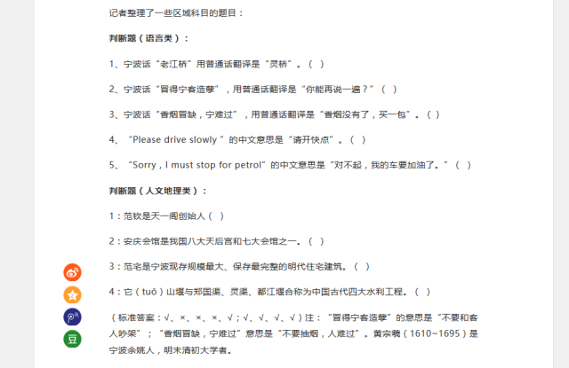 实际上,类似“高难度”考试内容不唯宁波有。一些地方的考题,不仅有丰富的地理和人文知识,还要考场景英语,并且要求能说会听。
