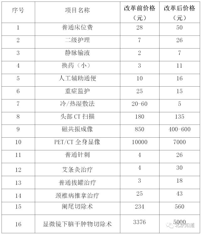 知道君挑几个大家最关注的服务项目,给大家看看改革前后具体价格: