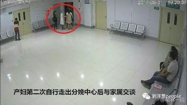 马茸茸跳楼前曾先后两次走出分娩中心与家属交谈。
