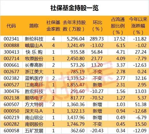 年报披露期,机构最新持仓动向曝光!社保基金重仓股发生了哪些变动?