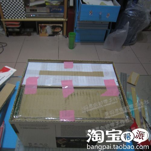 24、把夹层固定在抽屉套上。还是小条胶带粘胶的办法,固定四角关键部位