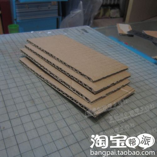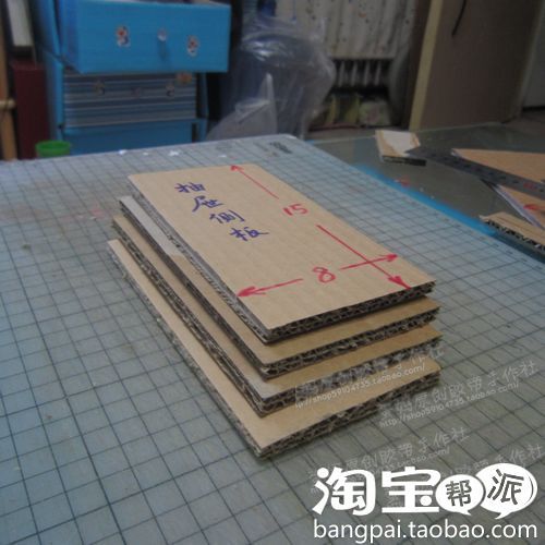 7、波浪纹不冲前的侧板也裁四片。因为是小柜子,所以用了单层瓦楞纸,因为承重不需要太大。