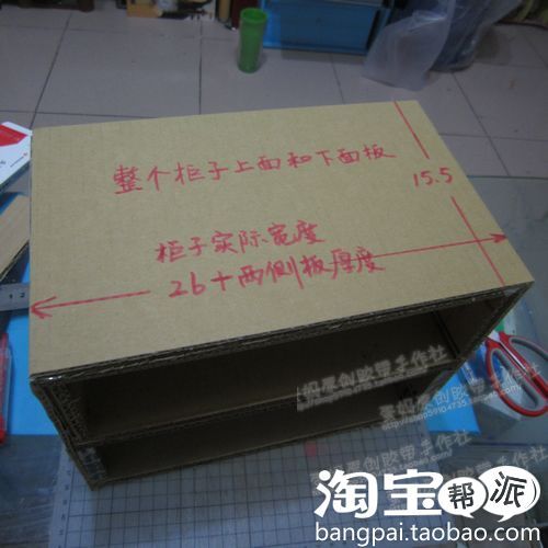 侧板起着关键的承重作用,如果是做大柜子,一定要用两片双层瓦楞纸板,承重会更强些。做就做结实嘛