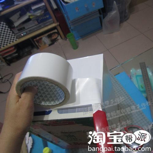 贴的时候胶带先贴在面板上,然后再粘侧板,感觉这样比较好操作些。