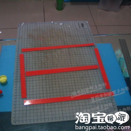 33、然后再贴整条胶带固定。因为透明胶带比较薄,新手MM可以这样把胶带剪成几断,更容易贴平整