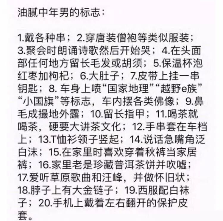 很多朋友问我怎么看。我想这是一个蹭热度的好办法。如何避免我是说不出一二三四的,但是如何算一个油腻的,猥琐的男人?恐怕,久病变成大病,还是可以可以谈谈病况,现身说法。然后自然不免各种狡辩,各种都是社会的错。