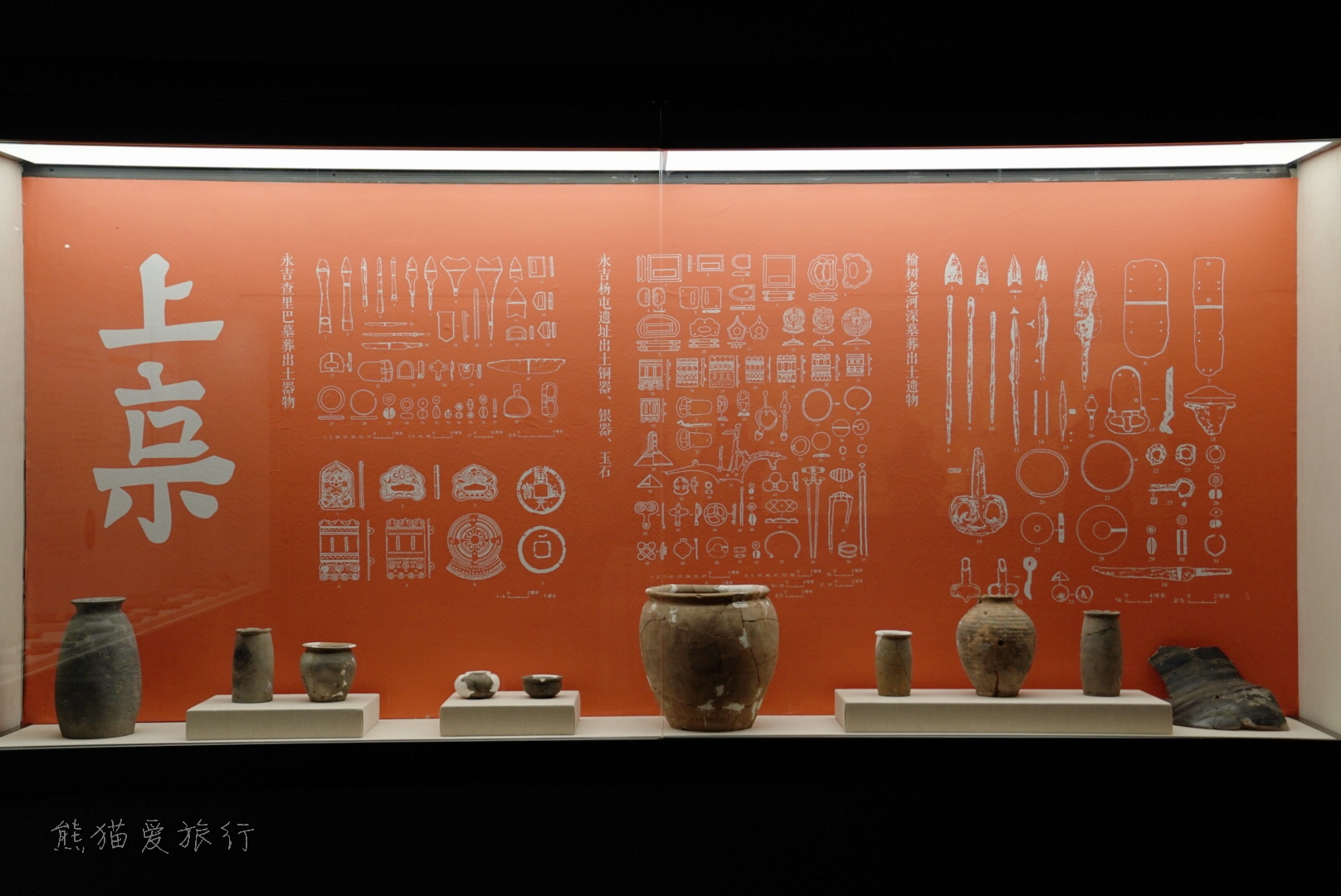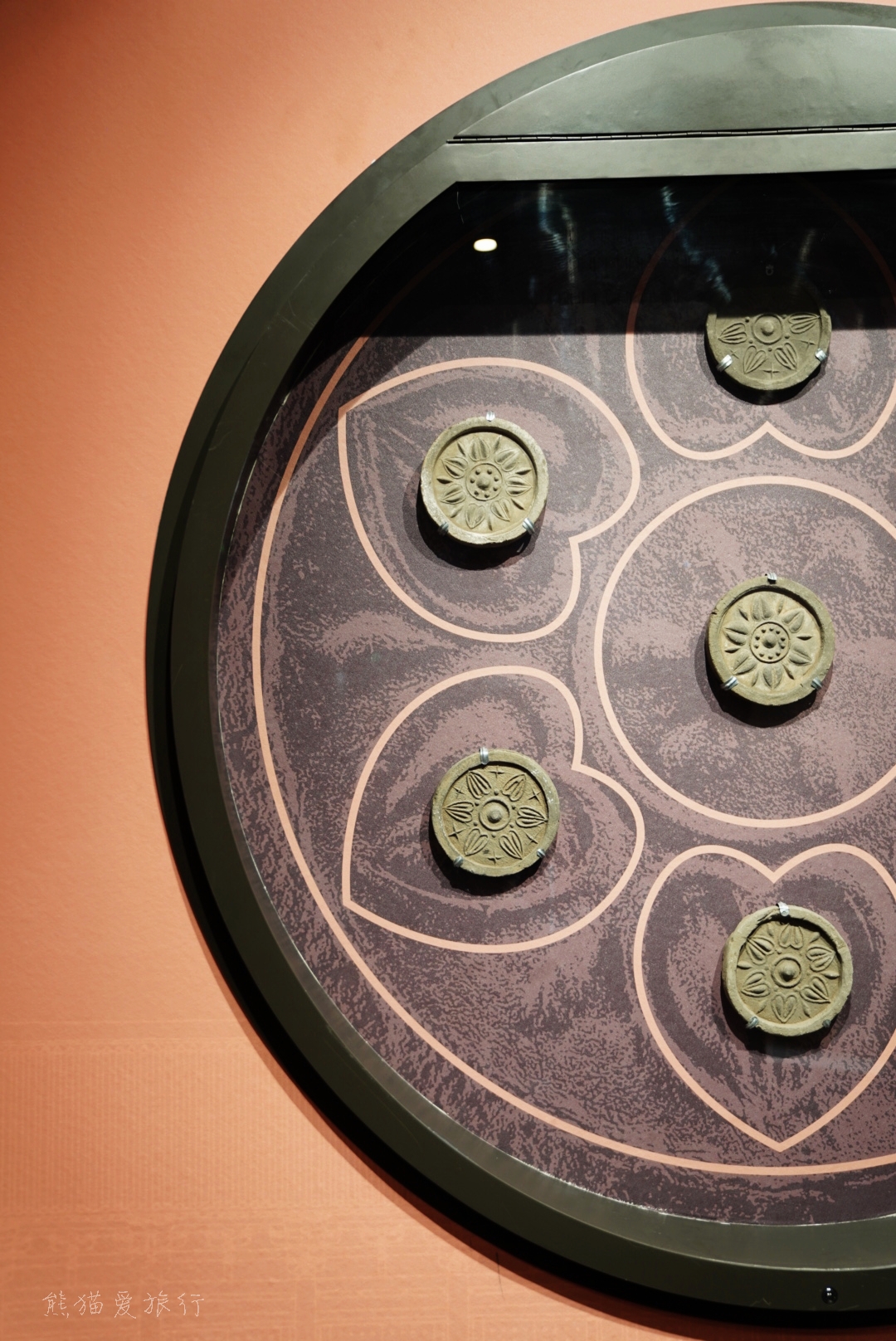 跟随博物馆导引的介绍,还能看到曾经渤海国的文字瓦片、檐头专用筒瓦,檐脊装饰兽头、出自贞孝公主墓葬的渤海国墓葬壁画复制图片等等,这里还有用三彩残件拼出来的大缸,类似于北京故宫的铜水缸,曾经被放置在宫殿前,储水防火用。