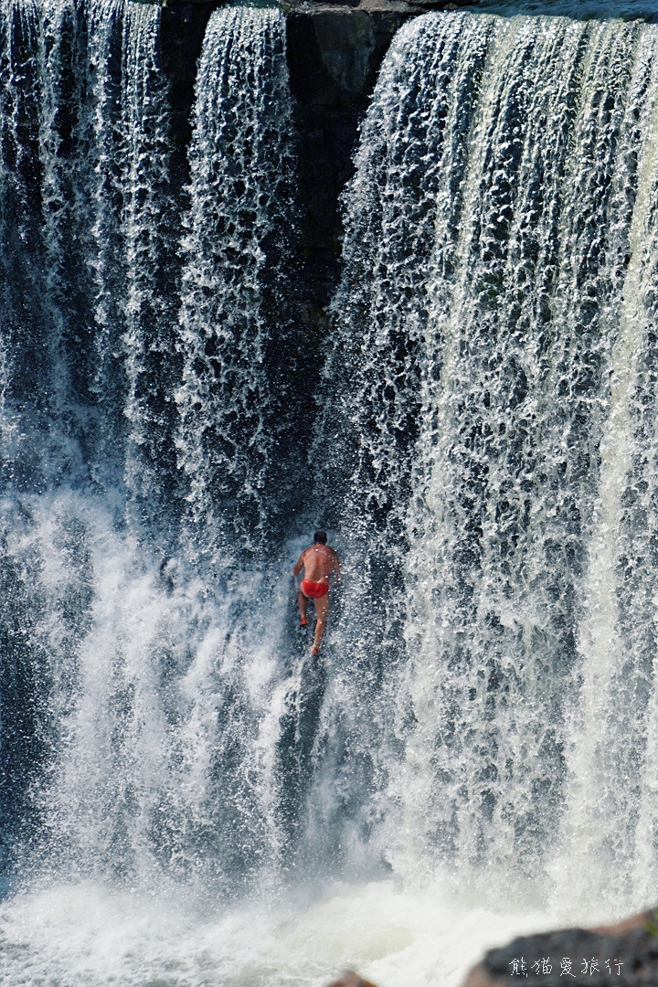 每天9点,10点两场瀑布跳水,表演跳水的是坚持了38年瀑布跳水的狄焕然,被誉为“国内悬崖跳水第一人”,是吉尼斯“世界最高瀑布跳水第一人”纪录获得者。看到他站在瀑布顶端纵身一跃,飞身跃下落差达20米的悬崖,惊险刺激引得众人喝彩!更让人佩服的,是他跳入瀑布之后,会沿着陡峭湿滑的悬崖峭壁,逆激流而上徒手爬回瀑布顶端!