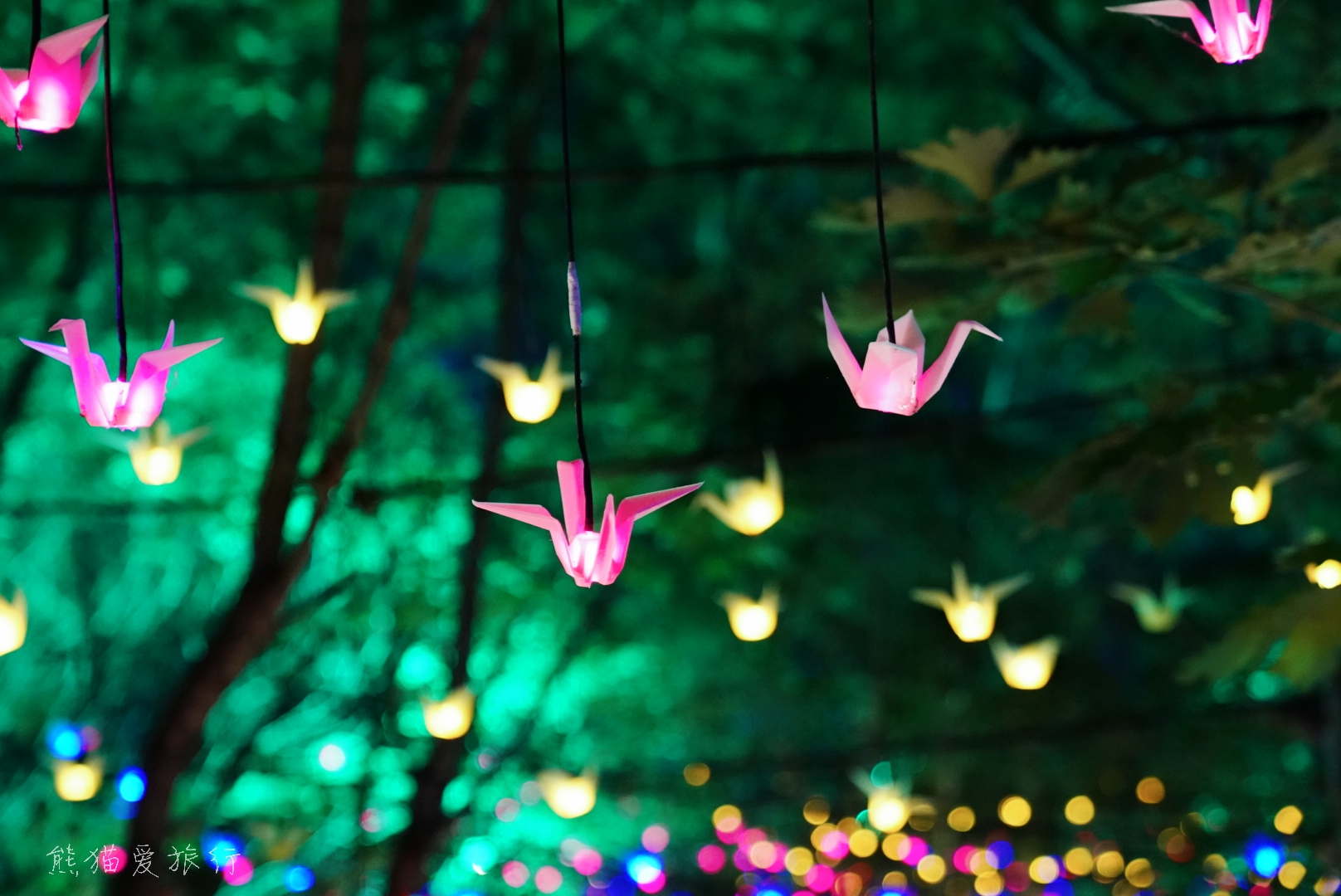 距离镜泊湖景区不远还有镜泊峡谷,白天可以在峡谷瀑布中徒步穿越,很多游客还特别喜欢夜游镜泊峡谷。夜幕降临后,镜泊峡谷上演灯光秀,树林里挂满了千纸鹤和水母灯,梦幻的仿佛进入精灵的森林。