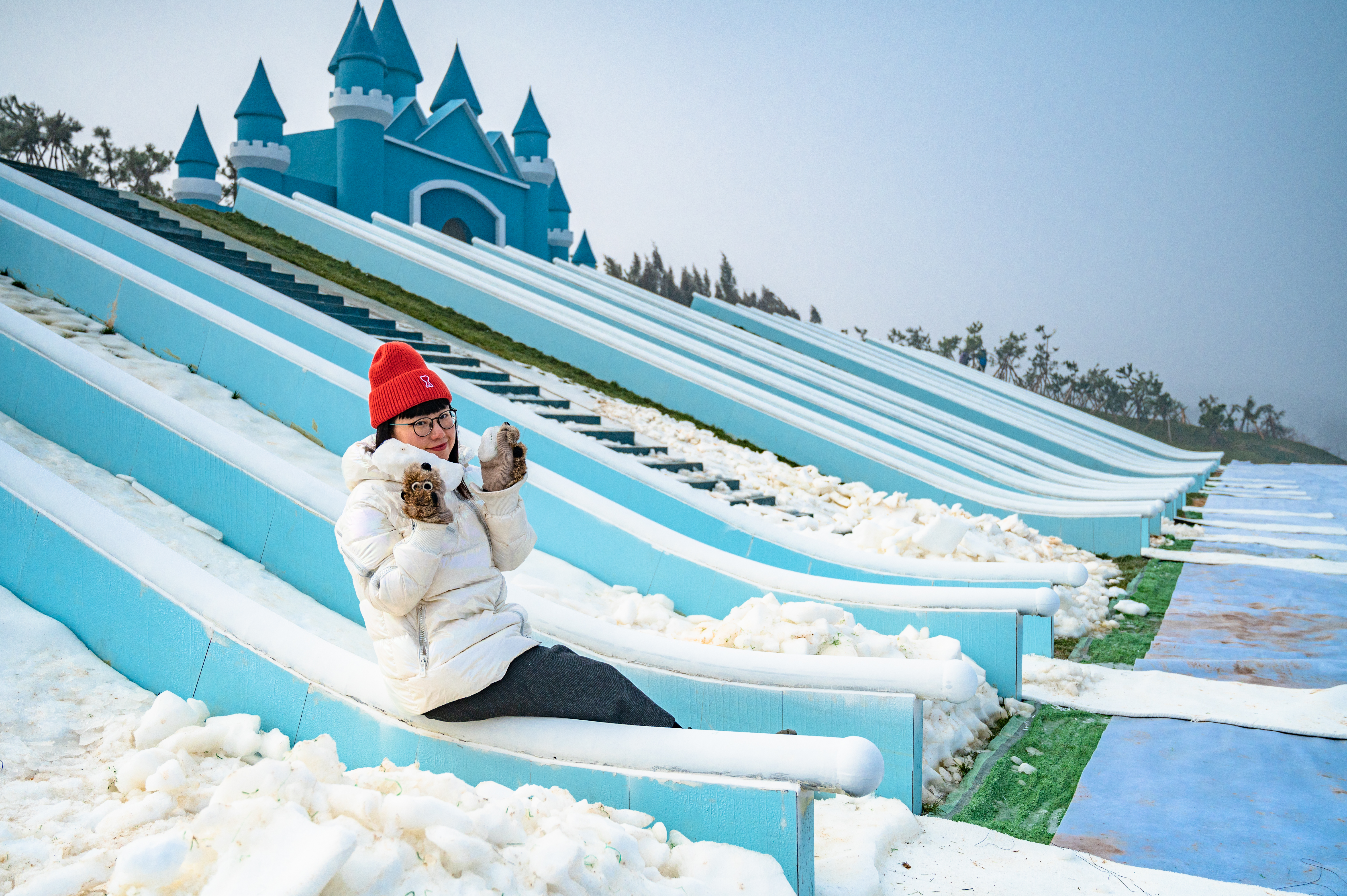 云上牧场还藏着一个梦幻蓝色城堡,城堡面前有好多条滑梯,不会滑雪的小伙伴也能感受到冰雪的乐趣,很容易上手,而且也很安全,坐上雪圈,就体验冰雪上的激情时速!另外云上牧场嗨藏着很多他特别适合拍摄梦幻浪漫照片的角落:艳丽的五彩巨石阵,高山花海间的钢琴,飞屋环游记里面被气球装点的飞屋,五彩缤纷的糖果屋、霍比特人小屋……来到这儿,让童话照进现实。
