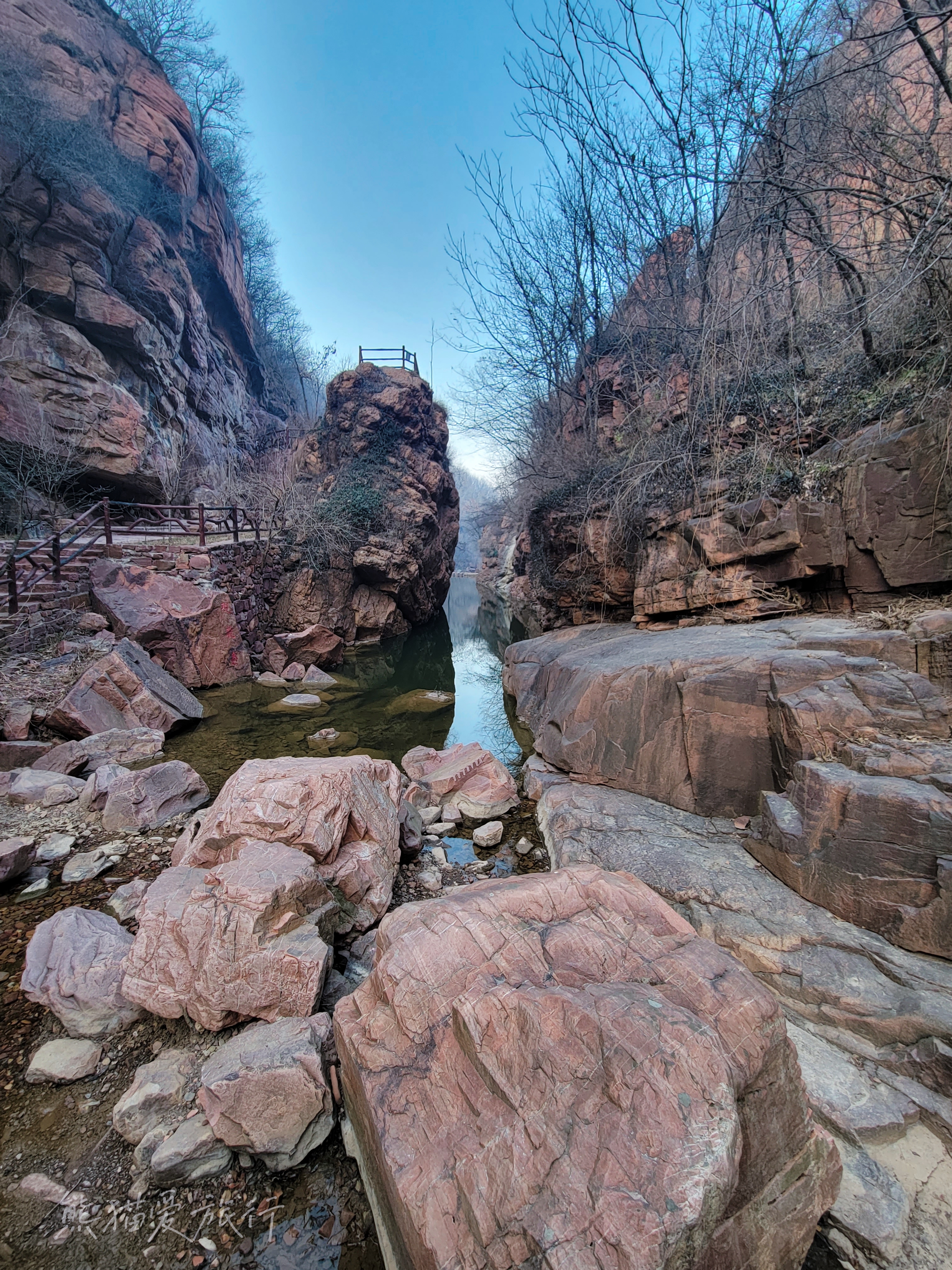 伏羲山大峡谷,是一条以典型的红岩嶂谷群地质地貌景观为主的峡谷景区,也是距离郑州最近,且落差最大的红石峡谷。两边的壁崖都是赤红色的,是北方少见的丹霞地貌。水潭瀑布遍布其中,5公里的路程不长不短,一路景色醉人。