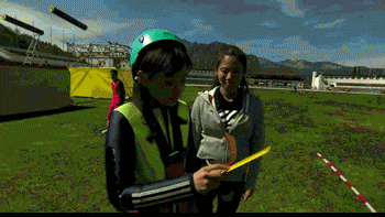 她那“小牙签”的身板拿着比自己还大的板子,