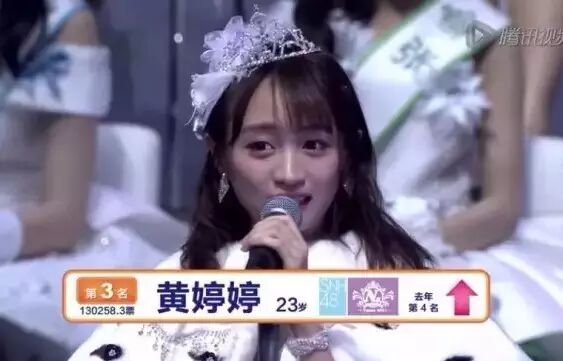 上周,黄婷婷在SNH48第三届偶像年度人气总决选中,拿到了第三名。