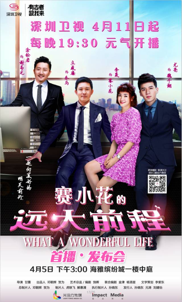 究竟李晟在她闹腾不已的北漂之路上有哪些悲欢和离合?究竟哪位王子才是她的命中注定?深圳卫视4月11日起每晚19:30,《赛小花的远大前程》即将欢乐开播!