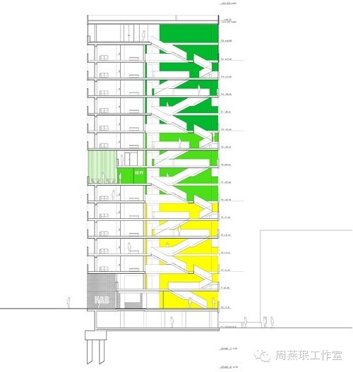 图2通过各楼层的色彩区分,使老人对周边环境的感受多了一个层次*