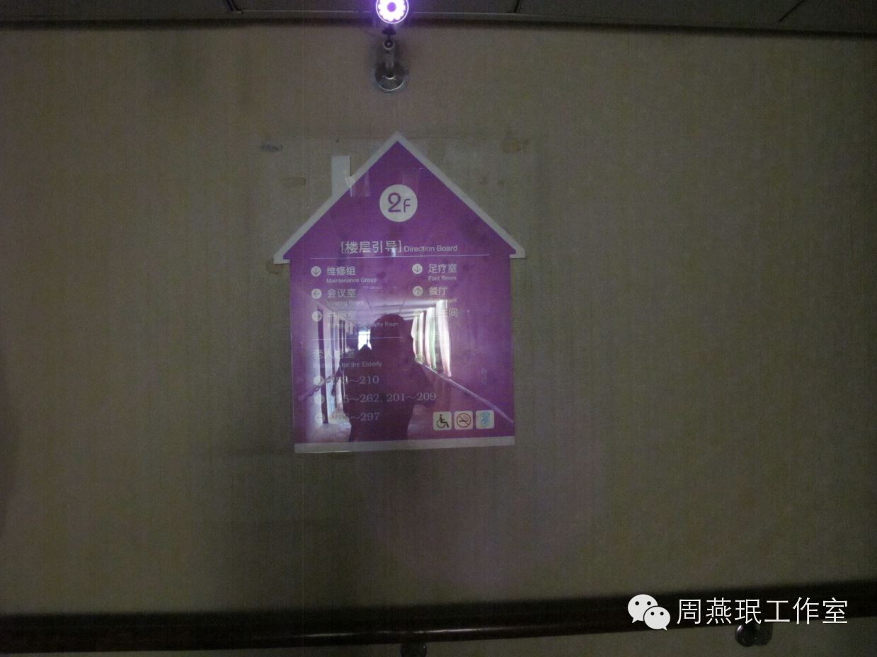 小结:在养老机构中,为长期居住的老人们营造一个熟悉安定而又健康积极的生活环境很重要。利用机构中随处可见的各类标识作为载体,为其增添一些有趣的元素,可以在不另外增加硬件投入的基础上,给老人们带来更多积极有益的信息刺激。同时因为所用的载体是老人日常熟悉的,所以接收到新的信息时老人也较少有心理负担。