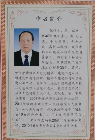 他和哥哥张卫生是黄冈建筑市场不可多得的人才,也都喜欢读书、爱文学。他的湖北玉环建筑工程有限公司是国家一级建筑企业,生意做到全国各地,声誉颇佳。他精于建筑预算,善于经营管理。虽说喜欢文学,平时所写不多。闲聊时,他总说,文章千古事,哪能是我辈说写就能写的。我所写只是一时兴感,或者给自己的人生经历做个总结,力所能及地提炼些与众不同的事,将其记录下来。